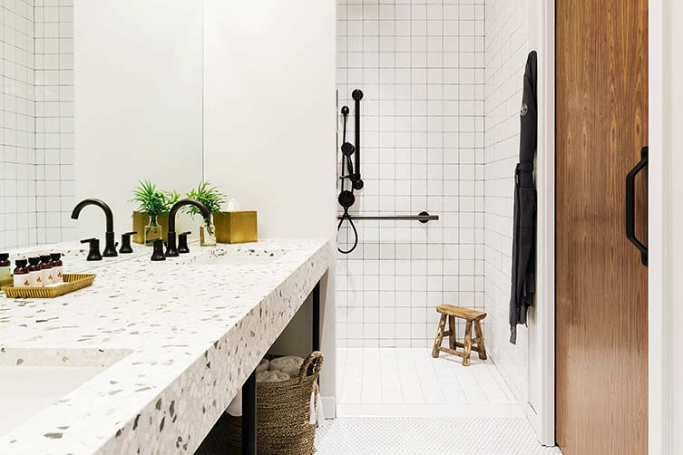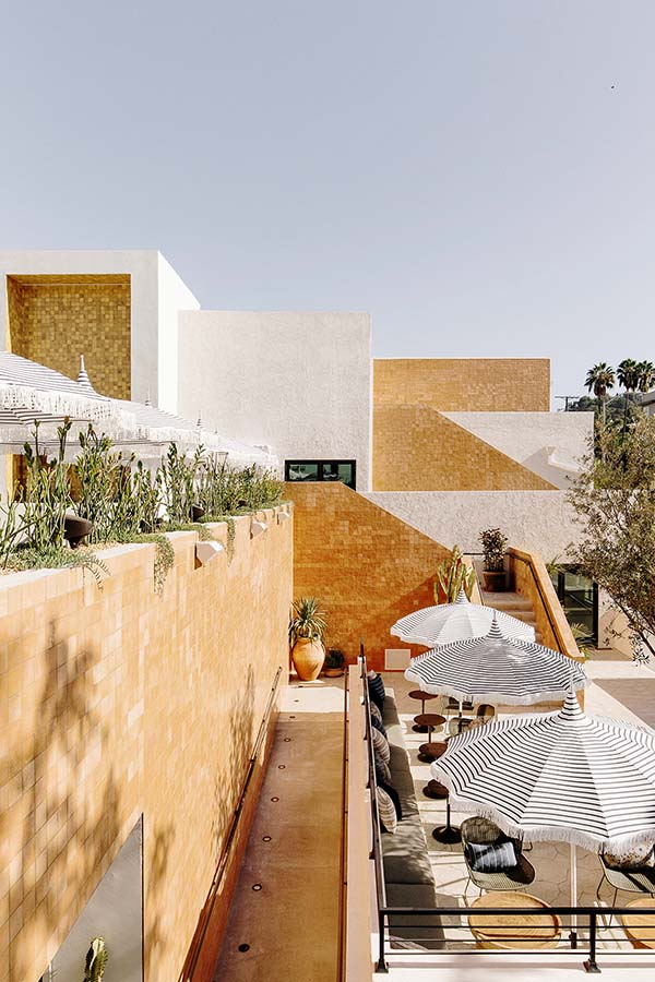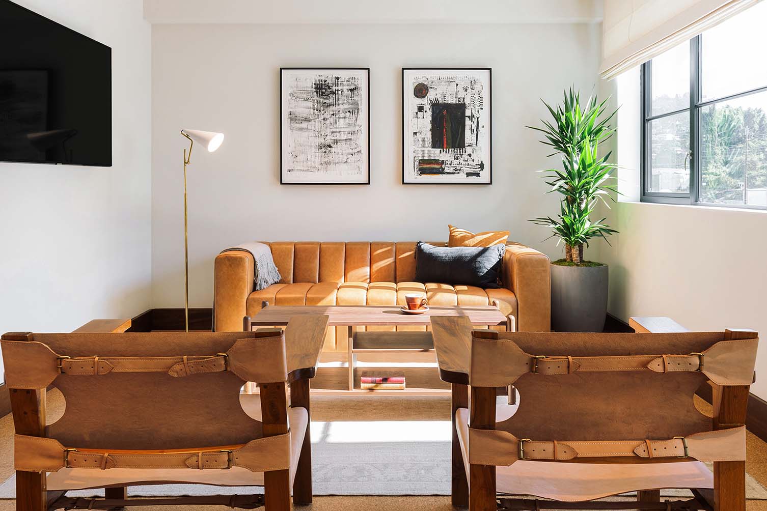 Guestrooms are designed as homey sanctuaries rather than hotel boxes. Neutral palettes are accented with textured rugs, woven details, and bespoke furniture, creating spaces that feel warm, livable, and distinctly of the neighborhood. Many rooms open to balconies or patios, giving guests a front-row seat to Silver Lake’s leafy streets and hills.