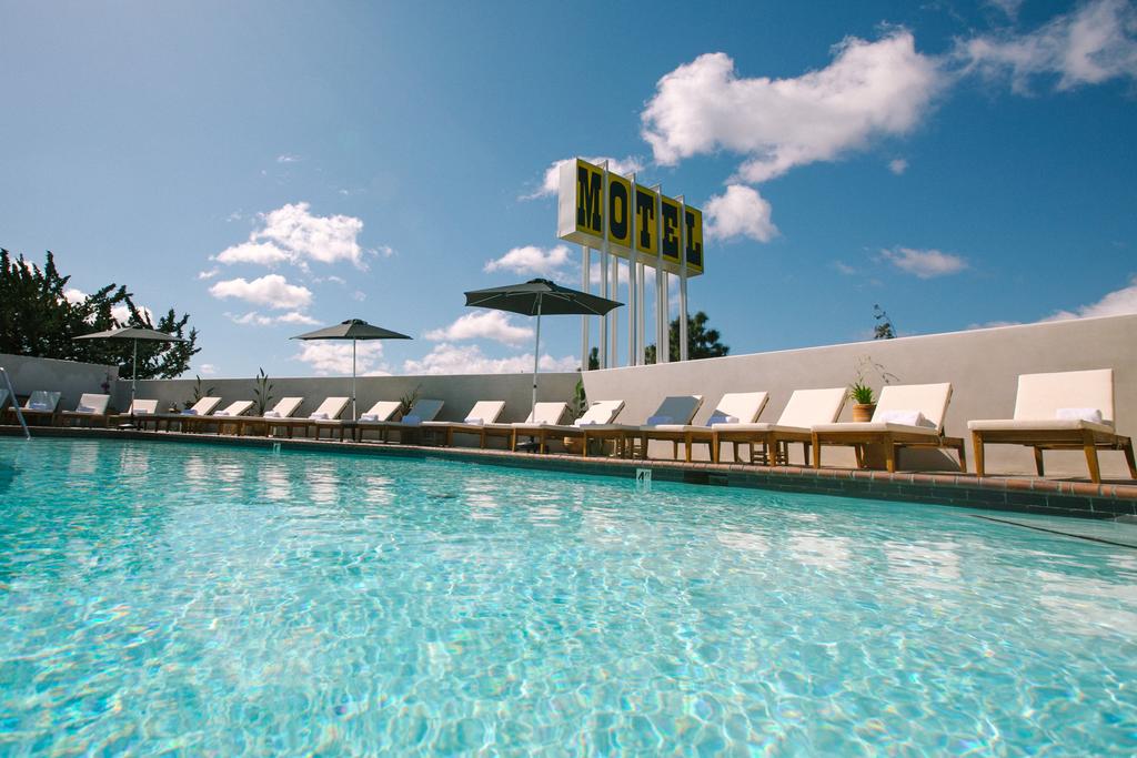At its heart, Skyview celebrates its motel heritage with its original 1950s pool, restored into a serene oasis. Umbrella-shaded loungers, twinkling string lights, and wide-open vineyard views turn the pool deck into a gathering place that feels at once timeless and fresh. It’s a setting that channels California’s golden age of motels—road trip romance, reimagined for today.