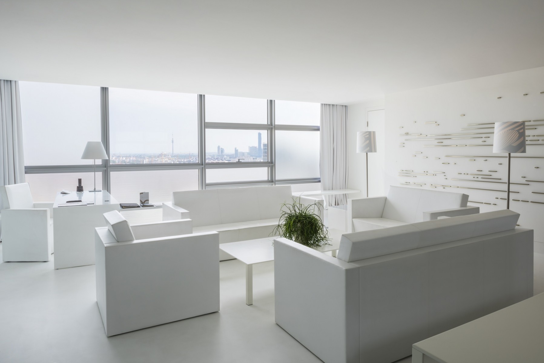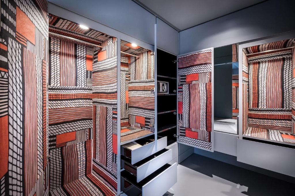 Nouvel’s signature is unmistakable — and uncompromising. The interiors at SO/ Vienna are a study in controlled contrasts: white, grey, and black palettes form the backbone of the design, punctuated by bold graphic lines and gleaming chrome accents. The 182 rooms and suites play with light like a fashion shoot, with floor-to-ceiling windows framing Vienna’s skyline in cinematic precision. Here, form doesn’t follow function — it elevates it. Bathrooms are sculptural, with backlit mirrors and glass partitions. Beds are perfectly centered like installations, while hidden lighting accentuates every angle. Even the minibar and wardrobe are designed as statement pieces. It’s sleek, provocative, and thoroughly cosmopolitan — a mood more than a space.