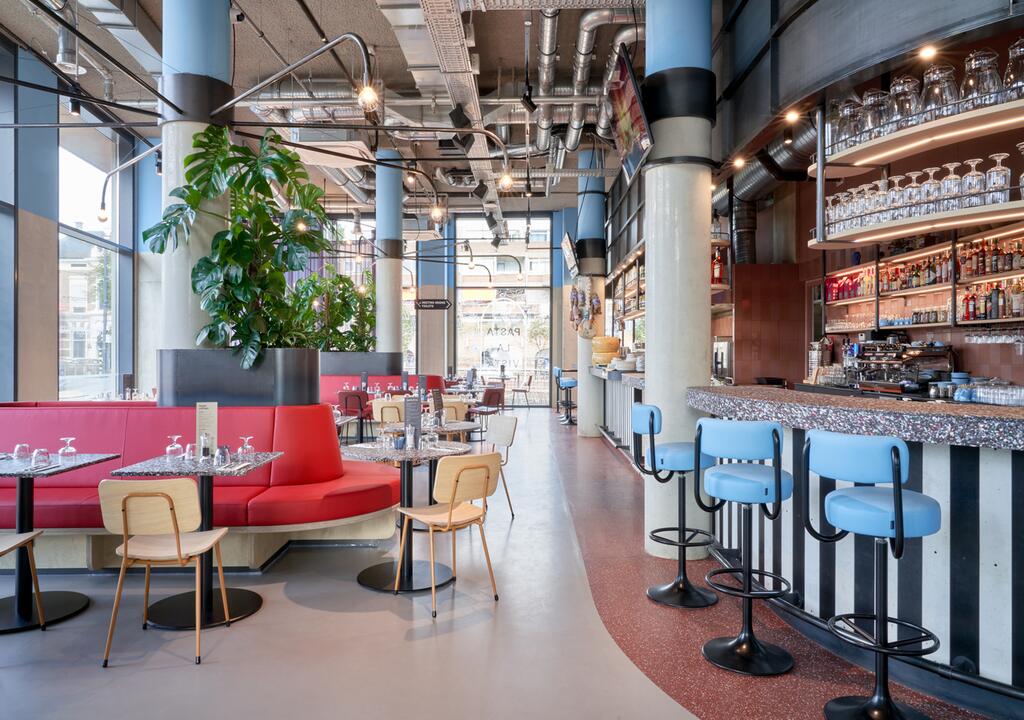 The interior design of The Social Hub Delft pays playful yet profound tribute to the city’s engineering heritage and its world-renowned Technical University (TU Delft). The visual language is bold and forward-looking, weaving together patterns, shapes, and materials inspired by the worlds of technology, aerodynamics, and data. From computer grid motifs on the floors and walls to streamlined, fluid architectural forms, every element of the space reflects Delft’s identity as a city of innovation. The design approach isn’t just aesthetic—it’s conceptual. It creates a tangible link between the hub and the pioneering spirit of the research labs, design studios, and start-up incubators that surround it. The result is a space that feels alive with possibility—a living laboratory for new ideas, where creativity is sparked by the very environment around you.