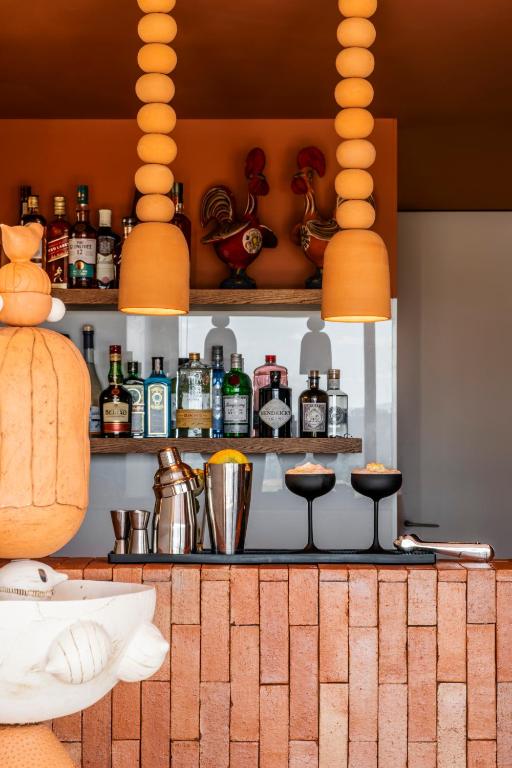 Inside, Solar de Vila Meã exudes a tactile richness that speaks to Portugal’s artisanal legacy. Wickerwork, hand-embroidered textiles, and rustic clay pottery weave warmth and authenticity into every room. Terracotta becomes an art form here—molded into sculptural wall sconces, strung like beads, or arranged in dramatic installations that echo the soul of the region. At the hotel’s Barro Restaurant, this same spirit continues on the plate. Seasonal, locally sourced ingredients are transformed into inventive interpretations of traditional Portuguese cuisine, paired, naturally, with the best wines from the surrounding estates. The setting—a space glowing in earthy tones and candlelight—balances rustic honesty with haute sophistication.