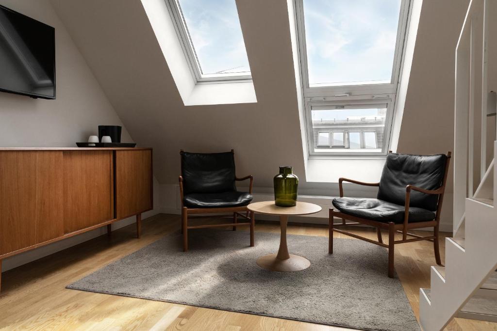 The hotel’s courtyard and rooftop terraces provide airy pockets for downtime, and a 25-seat private cinema adds an unexpected cultural perk. The location couldn’t be more convenient—steps from Torvehallerne, Strøget, the National Museum, and Tivoli, with metro and bus links moments away.