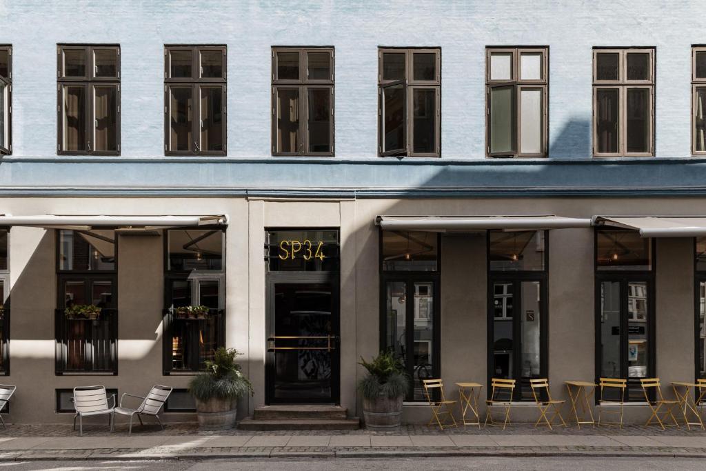 Hotel SP34 sits on Sankt Peders Stræde on the edge of Copenhagen’s Latin Quarter, blending three 19th-century townhouses into a single 118-room boutique property. Behind the traditional façades lies Brøchner Hotels’ most “luxury-bohemian” address—raw textures, curated art, blond wood, caramel leather, and softly lit corners that feel more like a creative studio than a hotel lobby.
