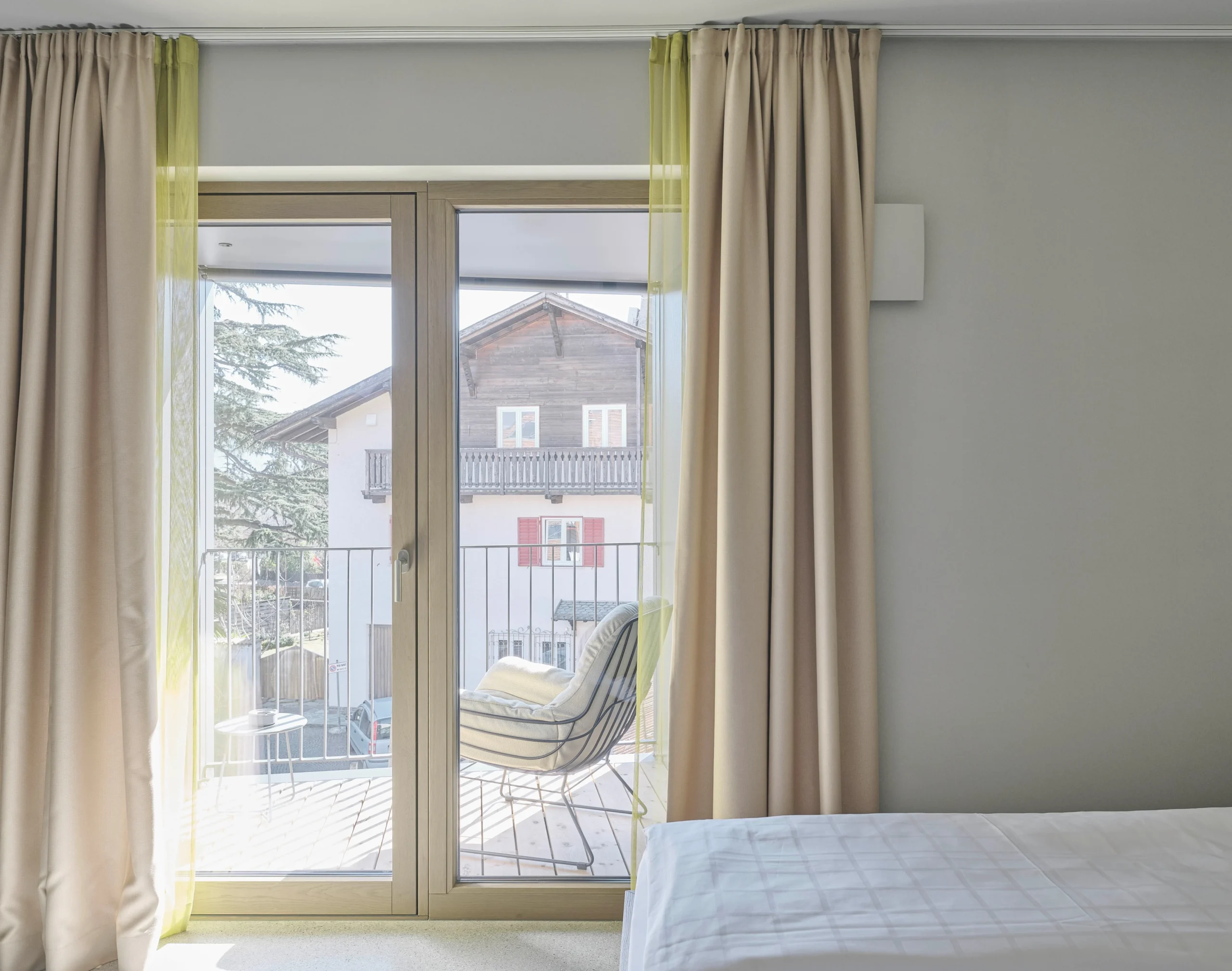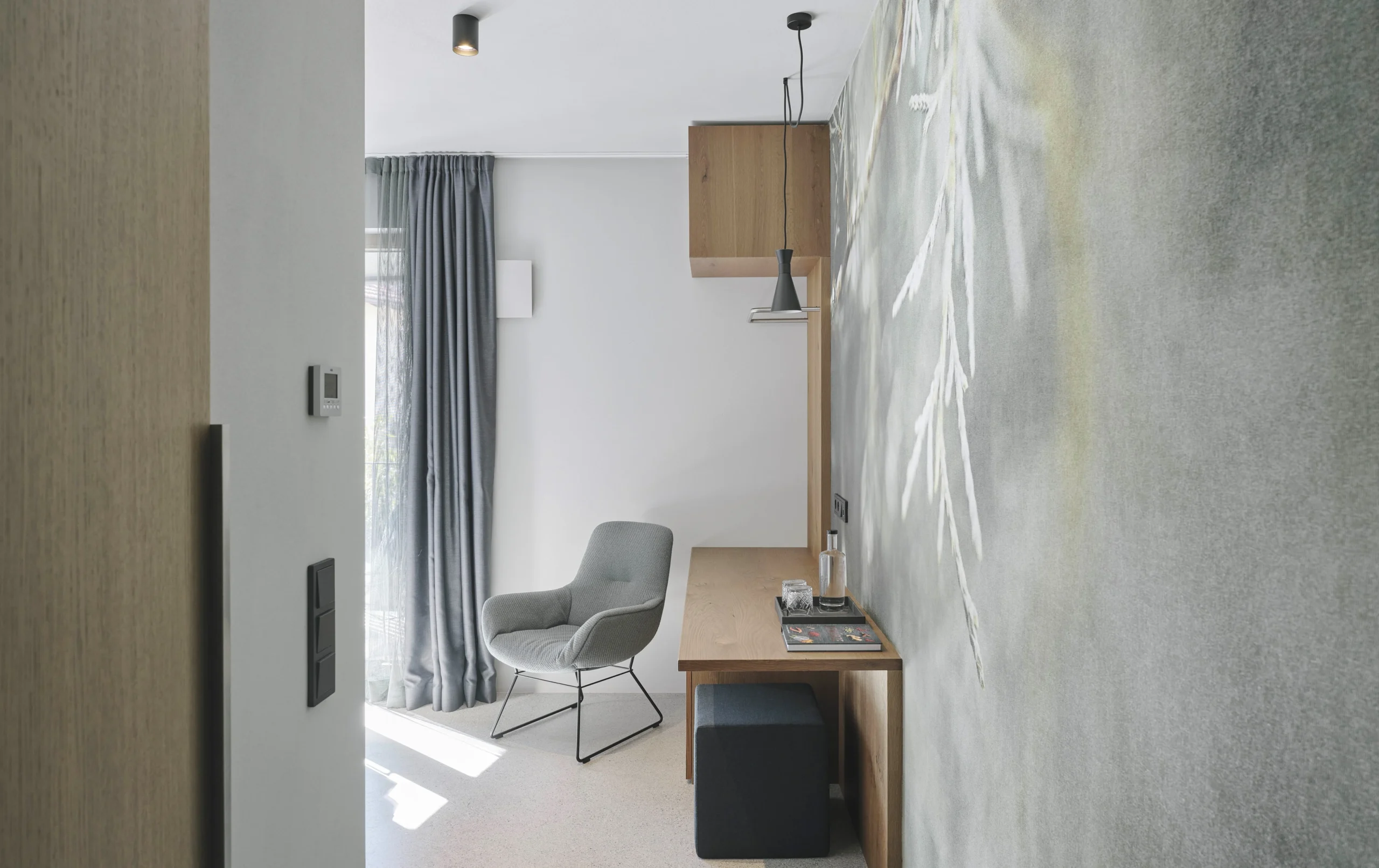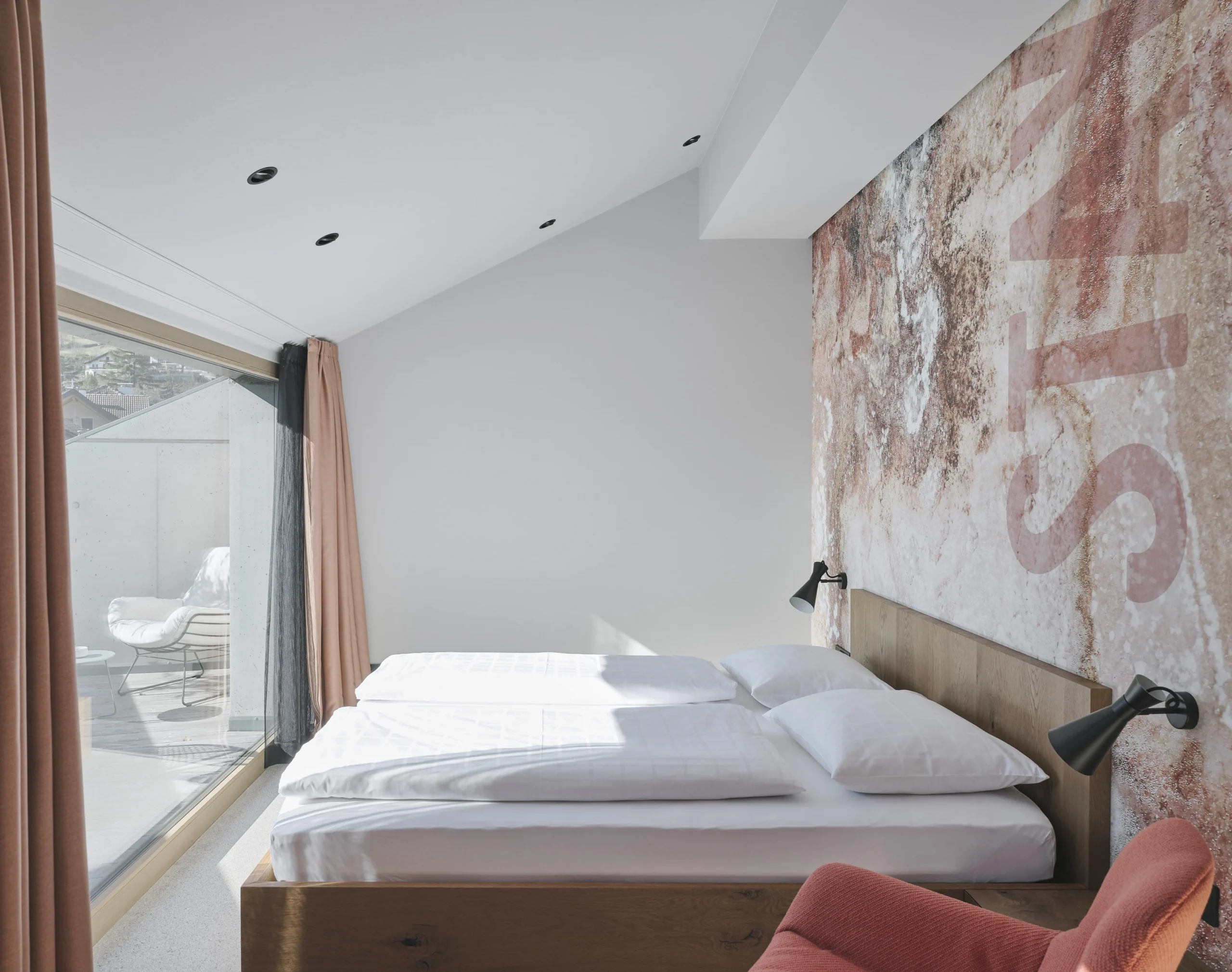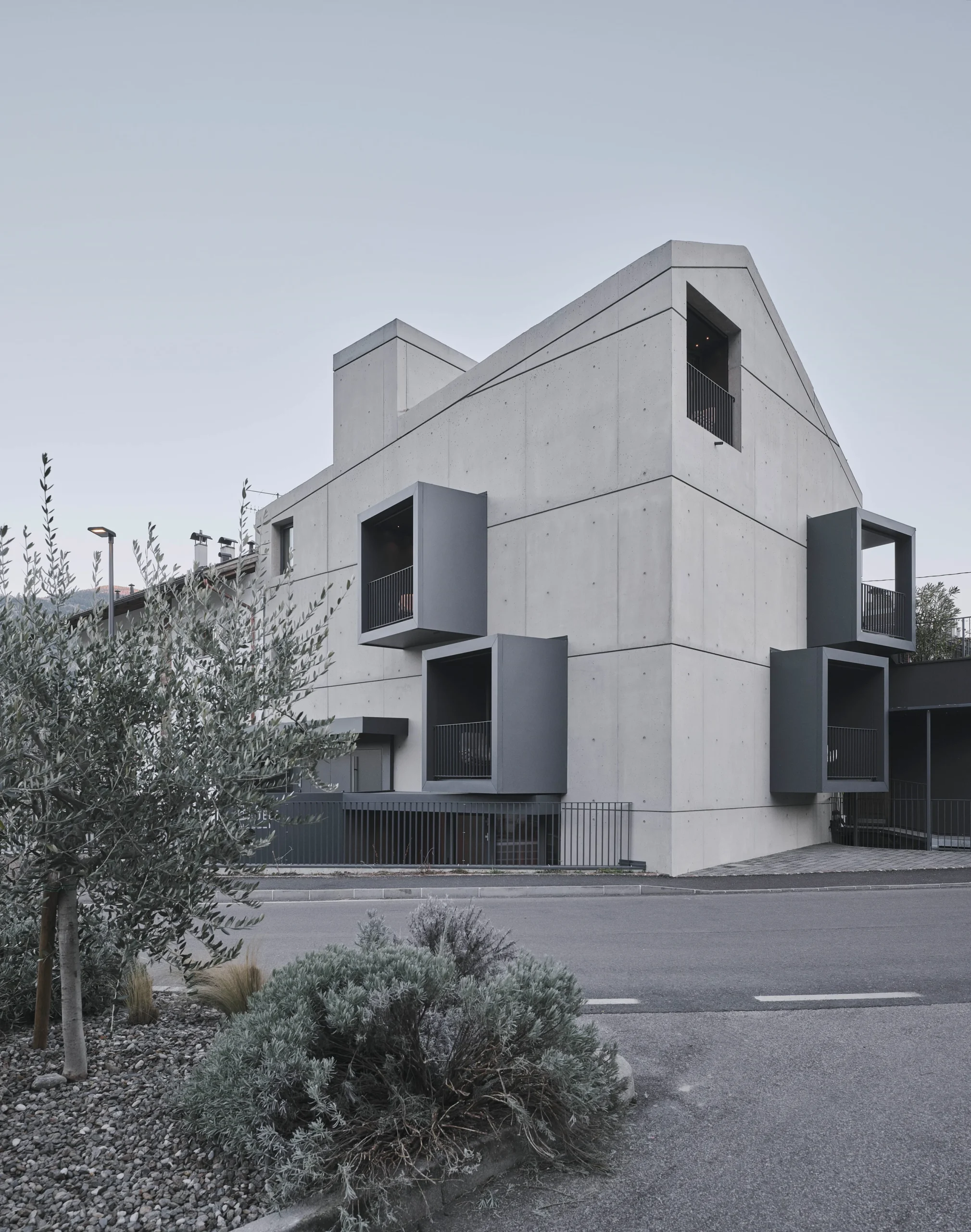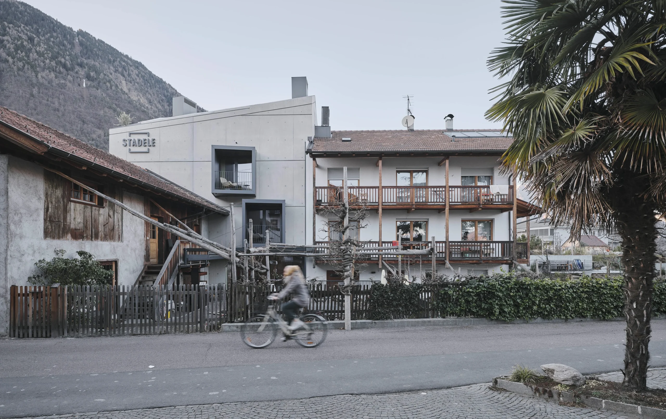 Next to a much-loved local restaurant in South Tyrol, Stadele Rooms turns boutique hospitality into a bold design experiment. Its sharply cut concrete structure reads like a sculpture—pared-back, clean-lined, and softened only by its velvety light-toned surfaces. Dark metal boxes appear to float along the façade, adding drama to the geometry.