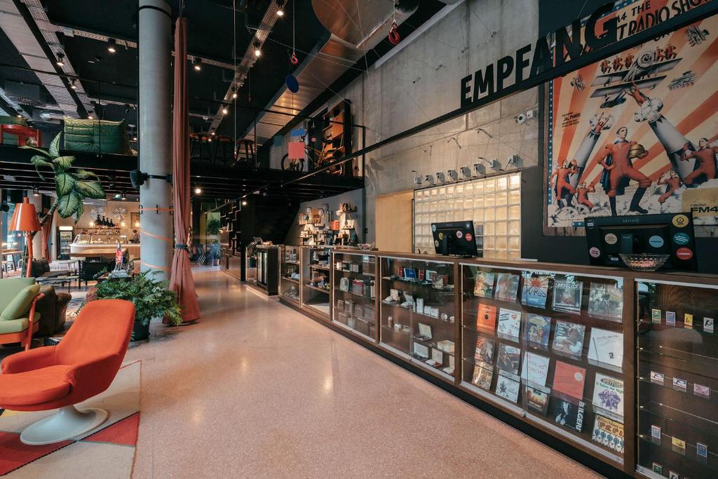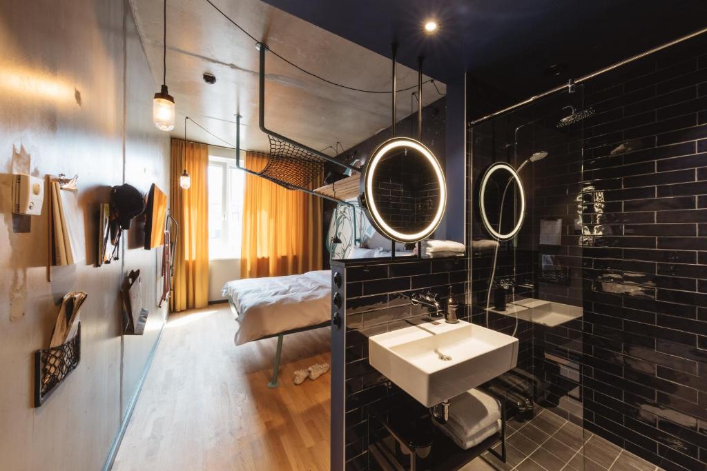 Step inside, and the playful personality of Superbude becomes impossible to miss. Corridors hum with energy, designed to feel like the backstage of a rock concert, lit by neon cues and bold signage. Public spaces come alive with striking murals, unexpected design flourishes, and whimsical objects that seem to appear where you least expect them. Seating isn’t just seating—it’s inventive, sculptural, and often a little cheeky, while pops of vivid color punctuate the raw steel and wood accents, creating a sense of joy layered over grit. It’s industrial design, reimagined with a smile.