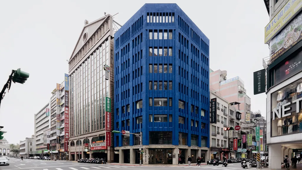 At once understated and striking, The Blue by Just Inn occupies a slender slice of Taipei’s bustling Zhongzheng District. With its deep cobalt façade and slim vertical profile, the boutique hotel announces itself not with grandeur but with quiet confidence. In a city of neon lights and towering glass, The Blue feels like an architectural pause—an intentional moment of calm amid the rush.