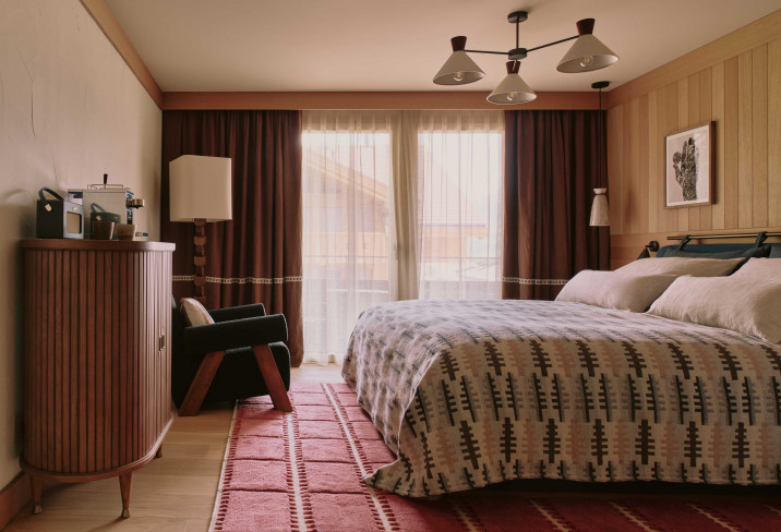Originally built in the 1960s, The Brecon has been beautifully reimagined by Amsterdam design studio Nicemakers, who kept the soul but turned up the sophistication. Timber walls, stone floors, and wool textures are softened by plush vintage sofas and warm lighting. It’s chalet-meets-Mad-Men, and every room opens up to sweeping mountain views that practically beg you to stay a while.