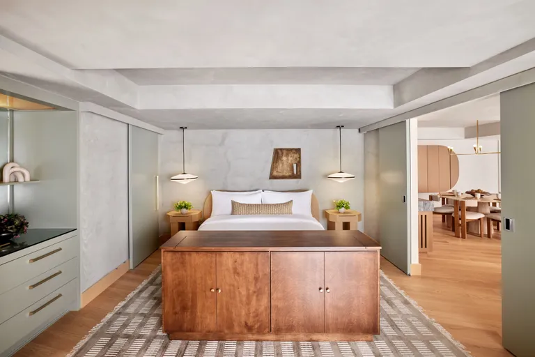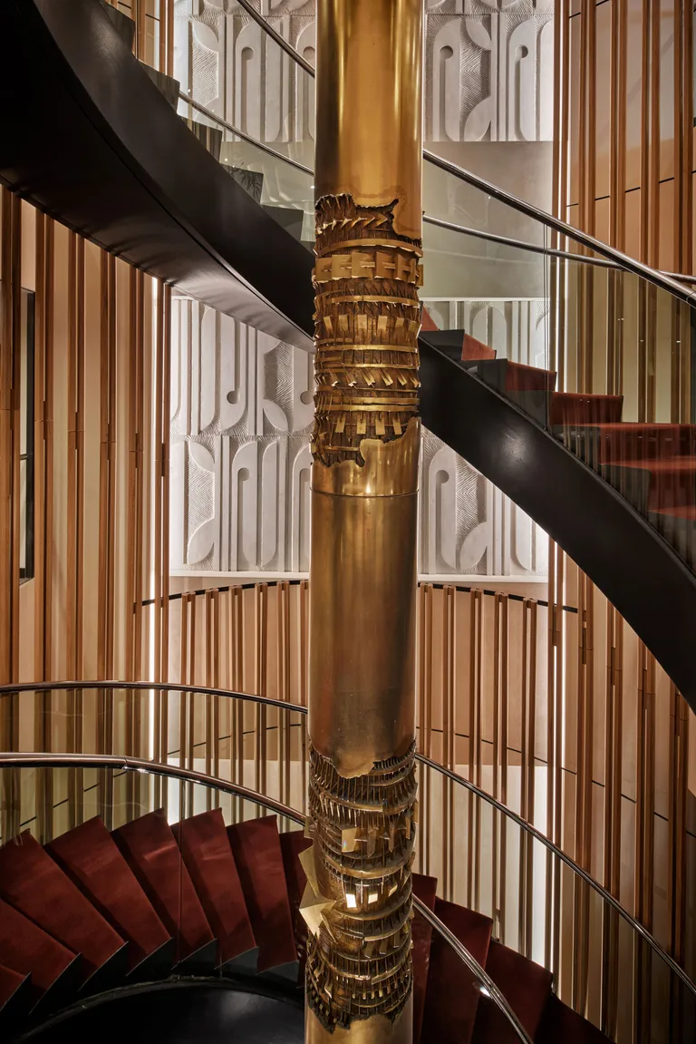 AvroKO’s interiors merge Brutalist geometry with modernist refinement, creating spaces that feel both sculptural and inviting. Raw concrete and bold lines are softened by warm woods, textured fabrics, and curated lighting. Throughout the hotel, subtle references honor San Francisco’s cultural icons: from the organic forms of Ruth Asawa’s wire sculptures to nods at Peggy Caserta’s free-spirited fashion revolution.
