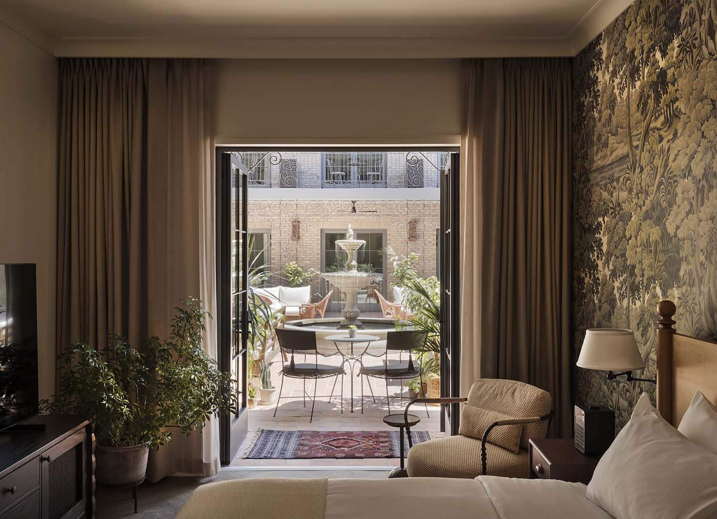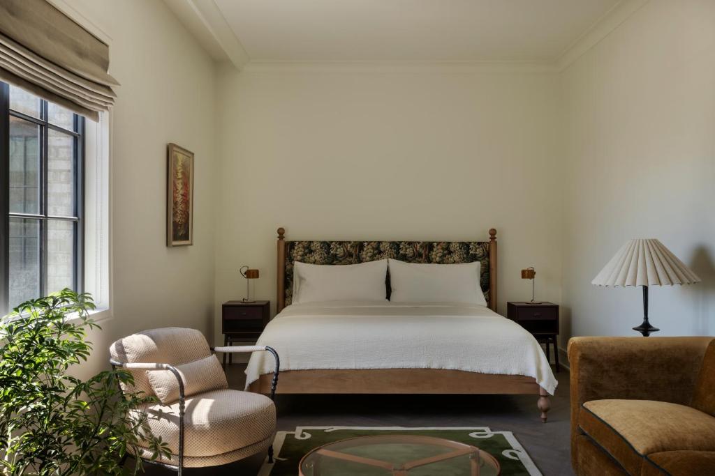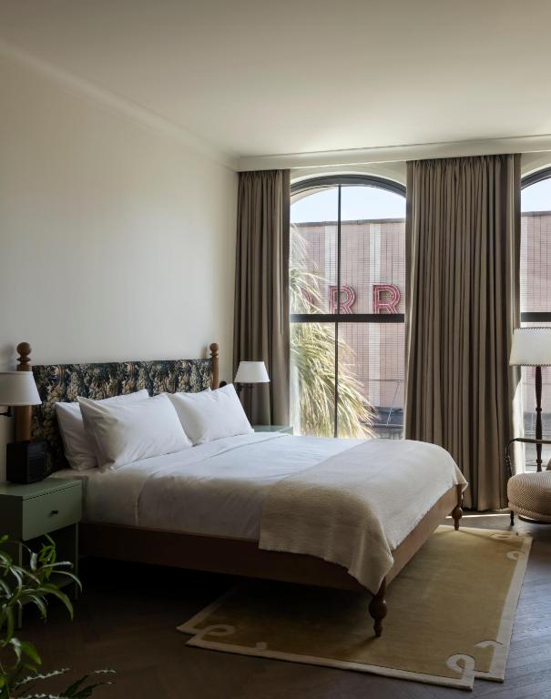 Guest rooms continue the industrial narrative with polished concrete floors, warm wood accents, and curated vintage décor. Large windows frame city views, and thoughtful details—like artisan-crafted furniture, local artwork, and spa-like bathrooms—deliver a sense of intimacy and modern luxury.
