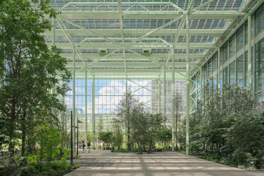 Double Standard: vibrant brasserie meets lobby bar, fusing Belgian and American fare below a lush ground‑floor “greenhouse” garden.