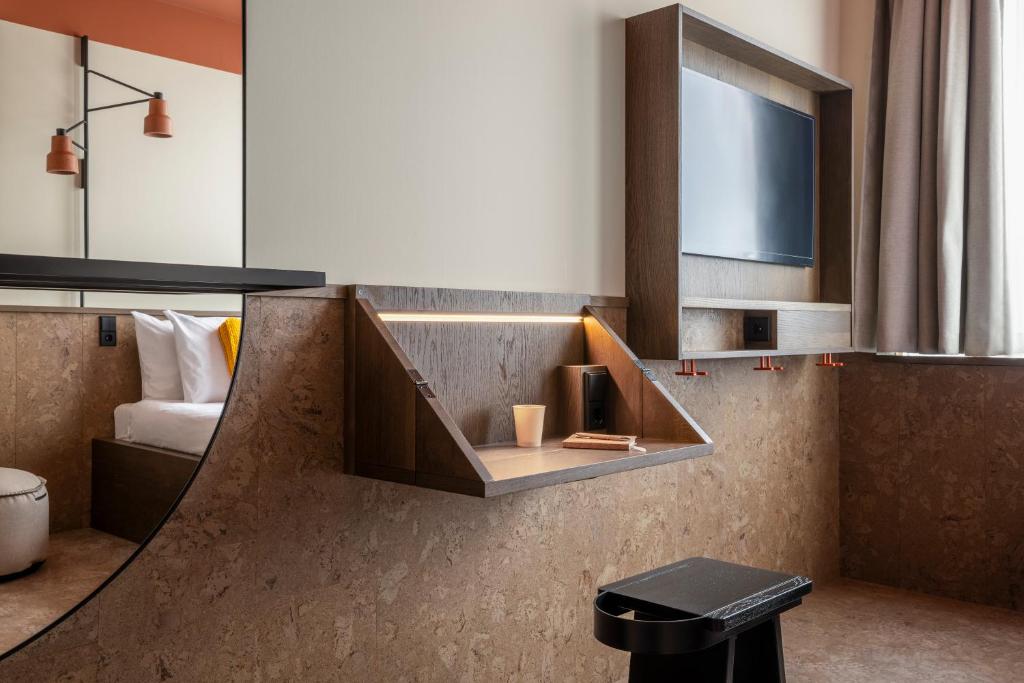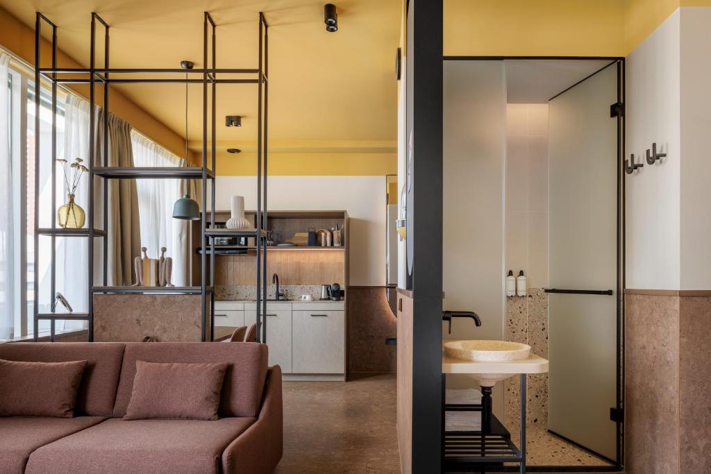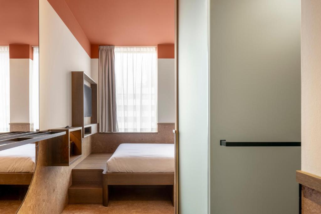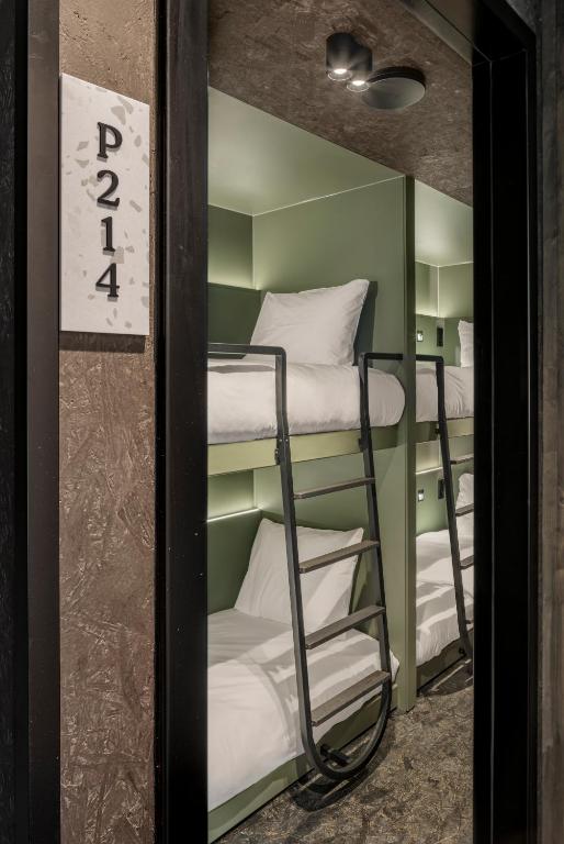 From compact pod-style capsules inspired by Japanese minimalism to fully equipped studios for longer stays, The Usual caters to every kind of guest without sacrificing its green mission. Materials matter here: cork walls, ceramic terrazzo, and mini terrariums in each room bring nature indoors. Studios come with sleeper sofas and kitchenettes, offering functional beauty with a low environmental footprint.