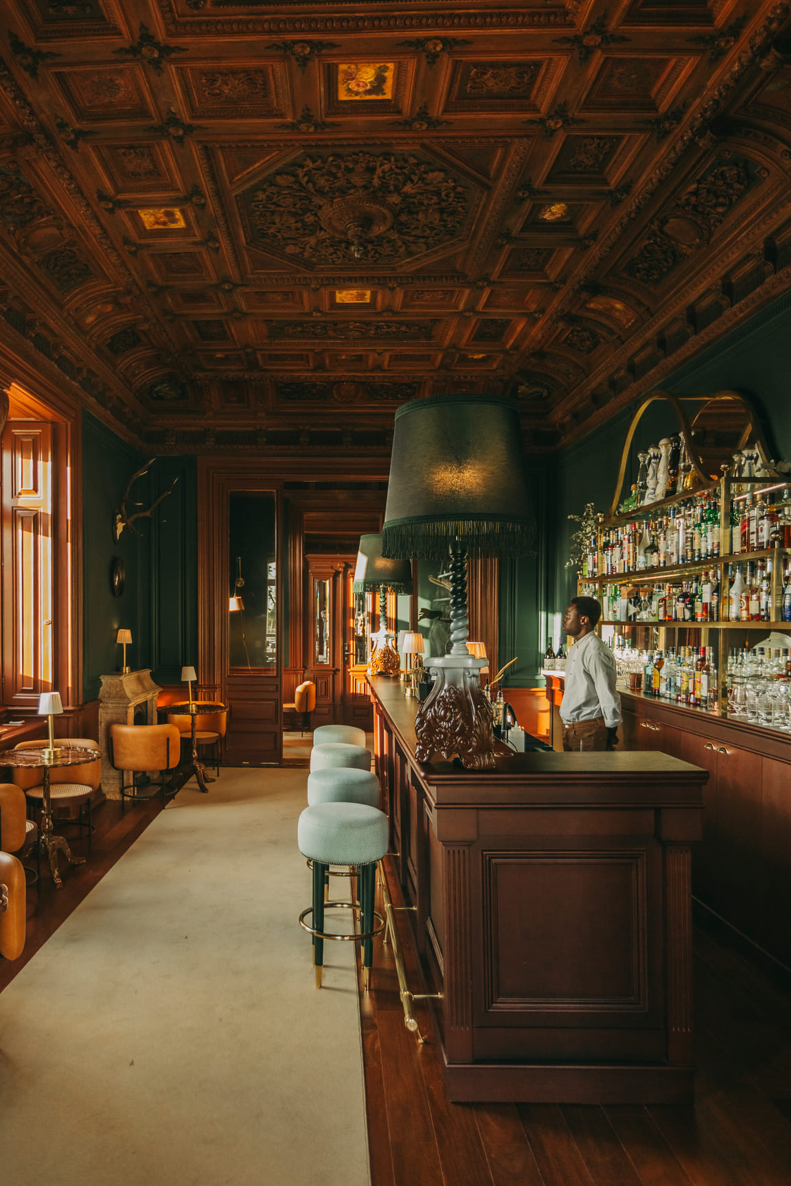 Each room and suite tells its own story, inspired by Portuguese kings and queens. The interiors reinterpret royal splendor with a modern sensibility—sumptuous fabrics, gilded accents, and elegant wallpapers paired with minimalist furniture and sculptural lighting. The result is a dialogue between eras: grandeur without excess, intimacy without austerity. The design, curated with impeccable restraint, respects the mansion’s original architecture—its ornate ceilings, grand staircases, and tall windows—while infusing it with the vibrancy of modern Lisbon. It’s an aesthetic that celebrates both history and reinvention, true to the DNA of the city itself.