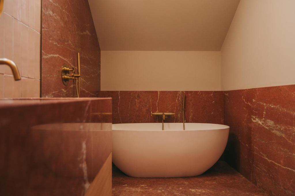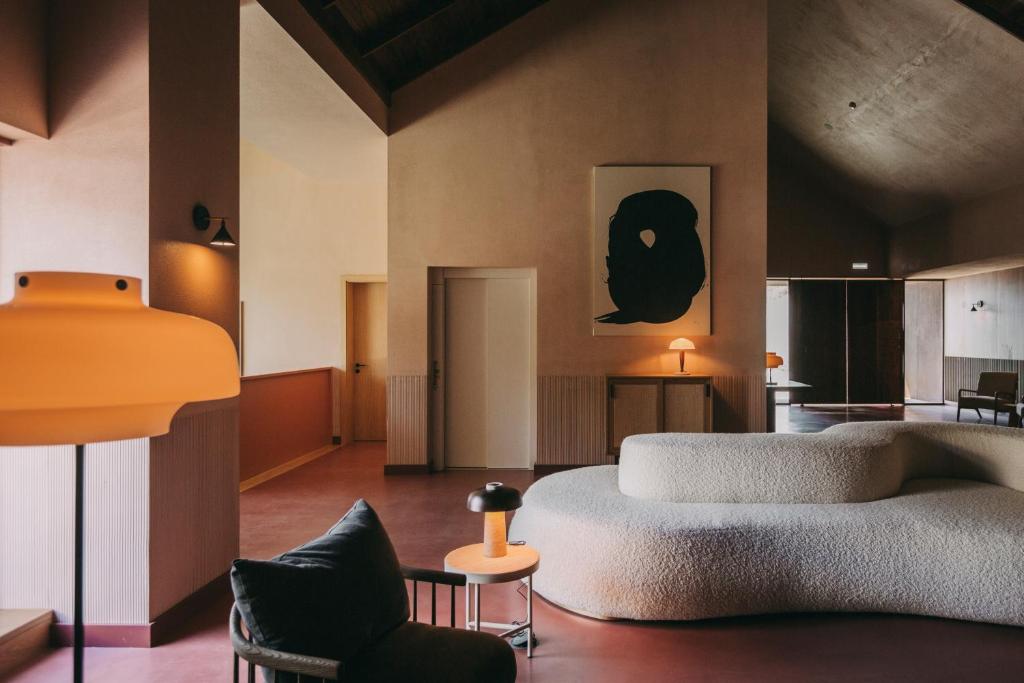 Each of the 33 rooms and suites is a deeply considered space, where local craftsmanship meets poetic restraint. Inspired by the textures, colors, and stories of the region, interiors feature custom-made furniture in oak and walnut, woven straw panels, and soft, tactile fabrics. Large picture windows turn the surrounding vineyards and river into living artworks, changing hue from dawn to dusk. It’s a design language that’s luxurious without ostentation, authentic without nostalgia—rooms that invite you not just to sleep, but to slow down, breathe deeply, and connect with the valley’s quiet power.