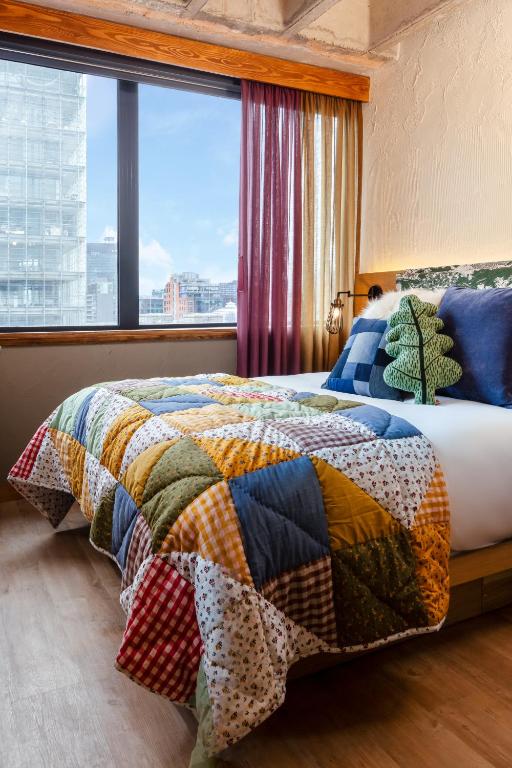 Forget sterile lobbies and grey corridors. Here, swings hang from the ceiling, greenery climbs the walls, and reclaimed timber keeps things warm and grounded. Everywhere you look, there are playful, tactile details that nod to childhood treehouses—except here they come with room service, rain showers, and rooftop views. Local artists have left their mark too, infusing the interiors with a distinctly Manchester spirit: colorful, creative, and just a touch rebellious.