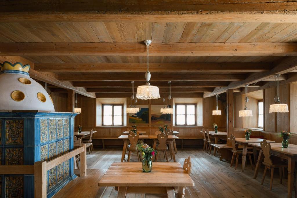 An expanded spa and wellness area includes an infinity pool, enlarged sauna and steam rooms, and the Paradise Garden rooftop—a place for quiet contemplation amid Alpine air. Every facility is designed not just for relaxation but for immersion in the surrounding environment.