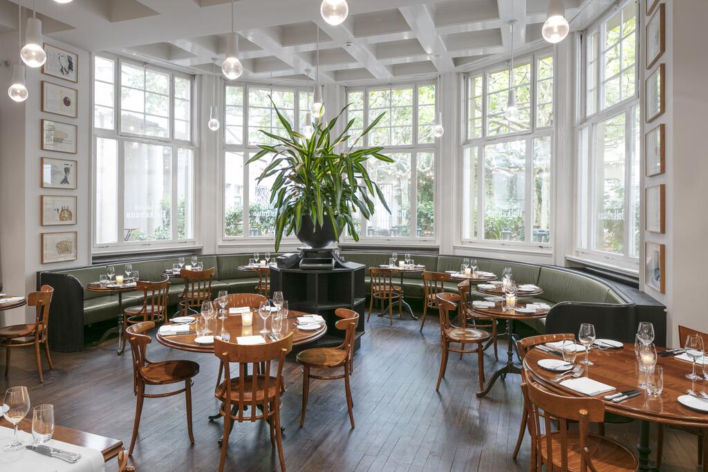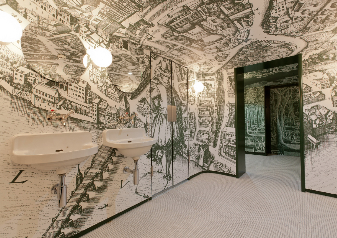 Volkshaus has always thrived as more than a hotel, and today it remains a creative anchor for Basel’s cultural community. Contemporary art dots the interiors, while the verdant inner courtyard provides a leafy respite for coffee, cocktails, or quiet reflection. At the heart of the building lies the stylish brasserie, a favorite of locals for its seasonal dishes and convivial atmosphere. And then there’s the Imi Bar, designed by German artist Imi Knoebel—a sculptural, color-rich space that hums with energy late into the evening.