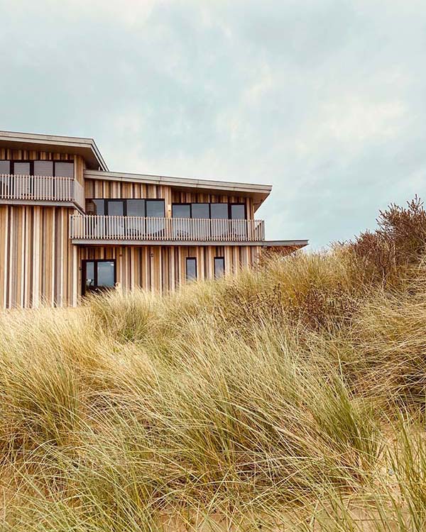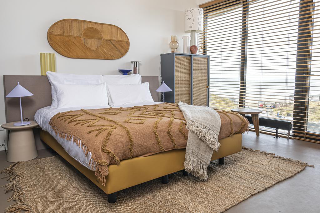 The hotel embraces soft, natural tones and raw, organic materials, echoing the coastal dunes just outside. Interiors are pared-back yet warm, with textures and colors that harmonize with the ever-changing skies and sea. The result is a serene, grounded retreat that blurs the line between indoors and out.